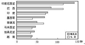 点评:本题难度较小。要求学生熟练掌握世界濒危物种数量位居前列的部分国家。