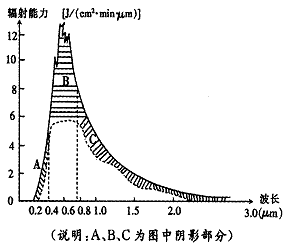 1、单选题 如图是近地面(虚线)和大气上界(实线)太阳辐射波长分布示意图。读图回答1—2题。