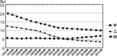 1.由图可知:甲、乙、丙分别表示出生率、自然增长率、死亡率。我国由于实行了计划生育政策,出生率、自然增长率呈下降趋势。又由于我国人口老龄化问题日益严重,死亡率有上升趋势。