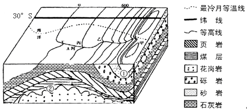 (1)① 向斜槽部由于受到挤压,物质不易被侵蚀反而成山。