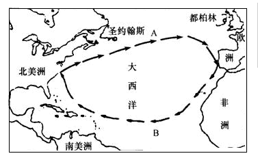 (1)写出图中各字母位置处洋流的名称:A________________,B________________。