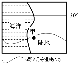 【小题2】若甲地附近洋面驶来一艘轮船,其桅杆上的旗帜最有可能飘向( )