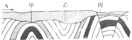 (3)在地貌上,甲构造顶部岩层缺失的原因是 ;褶皱构造上覆岩石是由________作用形成的。