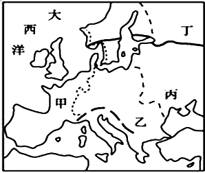 【小题1】由于欧洲大部分位于中纬度,受盛行西风影响大,而且沿岸有北大西洋暖流增温增湿,1月0°C等温线在欧洲西部大致大致与海岸线平行,呈南北走向;比较图中四条地理分界线,甲分界线距海岸线较近,与欧洲1月0°C等温线的分布特征比较吻合,故选项A正确。