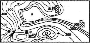 (2)根据等高线的特征可知,等高线向高处弯曲是谷地。