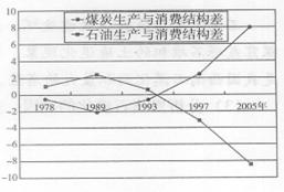 A.大力开荒种田,保持植物覆盖率 B.农业生产加强综合开发 C.发展以畜牧业为主的农业生产 D.彻底退耕还林 4、单选题 能源生产结构:某类能源的生产量占能源生产总量的比例。能源消费结构:某类能源的消费量占能源消费总量的比例。读下图“我国煤炭和石油生产与消费结构差”,回答下列问题。 |