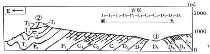 D.该地区的地质构造为:①处是背斜,②处是向斜,③处是地堑