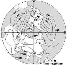 小题1:此时?(?) A.甲群岛受低压控制 B.乙海域盛行西南风 C.亚欧大陆受低压控制 D.北冰洋有极夜现象