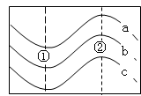 本题解析: 因为a﹤b﹤c,A若为等高线,所以①处为山谷,②处为山脊。B若为等压线,①为低压槽,②高压脊。C若为等温线,①为寒流,②暖流。D若为等压线,②气压高于①,风向由②到①。