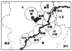 5、综合题  ? 2009年1月,国务院批准设立“皖江城市带承接产业转移示范区”(下图),参与泛长三角区域发展分工,承接沿海地区产业转移。据此回答下列问题。