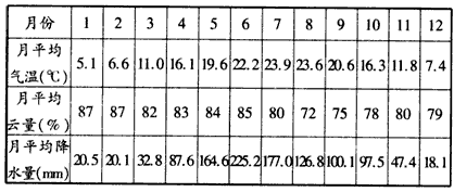 3、单选题  读我国某城市(106.73°E,26.58°N,海拔1223.8米)气候资料统计表,回答1—2题。