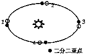 (3)地球公转轨道为近似?的轨道,地球运行到图中 ?点时(填字母), 接近远日点位置,其公转速度?。