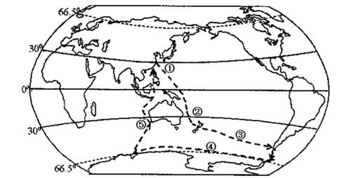 【小题2】关于①、②、③、⑤处对应洋流说法不正确的是