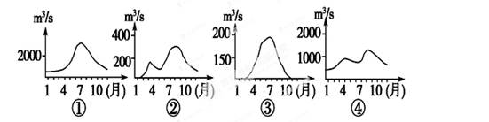 小题1:上面四幅图中表示西北内陆地区河流流量过程的曲线是(?)