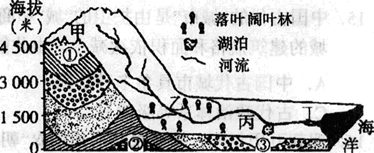 1.关于图示地区地质构造或地貌的叙述,正确的是2.如果图中丁处能形成城市,则下列城市可能是形成于该处的是3.有关图示地区叙述正确的是
