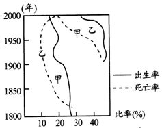 3、单选题 读甲、乙两国人口出生率与死亡率变化曲线图,完成下列各题。1.下列关于两国人口发展变化的说法,正确的是