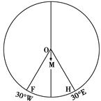小题2:由图中M点所在经线左侧为30°W、右侧为30°E可知,该半球为北半球。OM平分∠FOH说明M点位于0°经线上。“M为晨昏线上纬度最高点,北京正处于白昼”说明0°经线为零时经线,此时为北半球夏季,180°经线(国际日期变更线)的地方时为12时,全球分属两个日期的范围正好相等;此时乌鲁木齐已经日出;在北半球夏季,北半球纬度越高的地方白昼越长,纽约的纬度比台北高,昼长比台北的长;欣赏哈尔滨冰雪景观的季节是冬季。