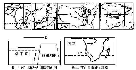 (3)图甲的纬度为19°S,所以位于赤道低气压带与副热带高气压带之间,为东南信风控制范围,受此风的影响,表层海水形成离岸流,低层海水上升补偿,形成上升补偿的寒流,本格拉寒流。