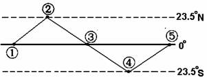 5、单选题  2010年10月1日18时59分57秒“嫦娥二号”在西昌卫星发射中心发射升空。该图为太阳直射点周年变化示意图,回答问题。