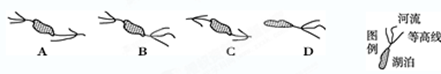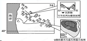 3、单选题 下图为某区域图,图中右侧分别表示甲河局部河谷剖面示意图和Q湖不同季节的蓄水面积分布图。读图,回答以下问题: