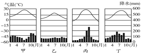 【小题1】该图中甲、乙、丙、丁表示的四种气候类型依次为