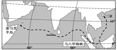 5、单选题 我国海军舰艇编队经过10昼夜的航行,于当地时间2009年1月6日凌晨抵达索马里海域,执行护航任务。读图4“中国海军远征示意图”,完成下题。