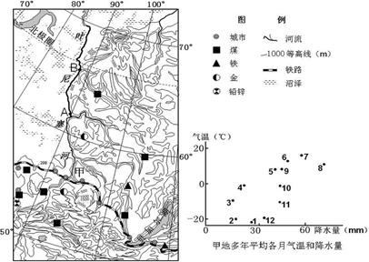 A.①地区纬度较高,热量充足 B.③地区海拔高,气温年较差大 C.④地区秋季晴朗,利于收摘 D.⑥地区土层深厚,土壤肥沃 4、综合题 读图,完成下列要求。(7分) 5、综合题 (36分)读图,回答下列问题。 |