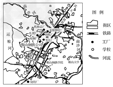 1、单选题  下图为鞍山市部分工业企业分布图。回答1~3题。