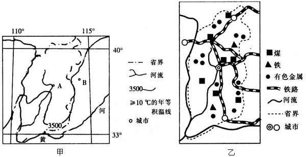 (3)图乙所示省区是我国著名的重化工工业基地,2010年12月13日经国务院同意,该省正式设立"国家资源型经济转型综合配套改革试验区"。结合所学知识,说明该省今后产业结构调整的方向。