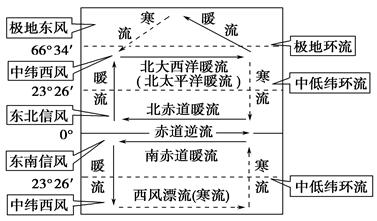 图示法理解洋流分布与气压带、风带的关系: