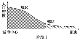 2.阶段II中,城区人口密度下降的主要原因?