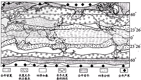 1.关于世界四季类型分布特点的描述,正确的是: