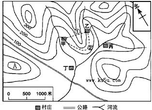 (4)如果在甲村和乙村之间修建一条公路,应选择_______(①或②)线。理由是_____________________________________________________________。(3分)