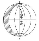 本题解析:本题考查光照图的判读。根据图示晨昏线的分布特征:晨昏线与经线重合,则判断为春秋分日,即太阳直射点的纬度为0°;根据图示晨线与赤道的交点为6时,推断本初子午线的时间为10时,则太阳直射点的经度(12时所在的经线)为30°E。