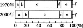 1.直接比较图示从1970到2000年的人口占世界人口总人口的比重判断,a大洲的人口增长最快。
