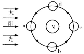 (3)地球运行到图中B位置时,在地球上看到的月相是_________________________。如果在清晨观察天空,从时间先后比较,该月相的出现比太阳升起的时刻要___________________________________。