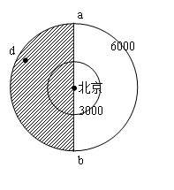 A.a、b两点的地方时为6时 B.a点的位置是64ºW,86ºN C.北京处于多雨季节 D.我国华北地区春旱严重 |