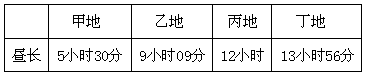 (4)图中A、B、C、D四点中,昼长由短到长的顺序是 。