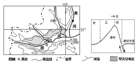 (1)说明内外力作用在渭河平原形成中的表现和作用。(4分) 材料一?图中阴影部分东西狭长,南北窄小,像一条带子缠绕在渭河北部,以干旱严重闻名,被称为“旱腰带”。该地地形破碎,起伏大,属于水土保持重点治理区。 (2)简述本地区干旱严重的自然原因。(4分) 材料二?葡萄是喜光作物,适宜在坡地上栽培,水热系数(K值)与昼夜温差是影响葡萄品质的重要因素。(K=∑P/∑t×10,其中K为水热系数,∑P为温度≥10℃时期的降水量,∑t为温度≥10℃期间的活动积温)。