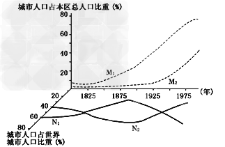 小题1:本题考查了当前城市化的特点。发达国家和发展中国家城市化差异大,发达国家城市化起步早,水平高,速度慢,出现逆城市化现象。发展中国城市化起步晚,水平低,发展速度快,城市发展不合理。城市化进程受经济发展水平制约。所以本题选择B选项。
