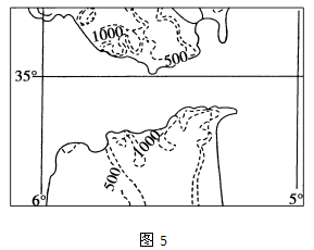 4、单选题 图5为世界某地区图。读图回答3-5题。