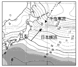 (4)图B中B处的等温线比较密集,是因为处于两支不同性质洋流的交汇处,并由此形成了著名的北海道