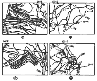 4、单选题 ?读图中①②③④四图“两组同纬度地区等降水量线图”,回答20-22题