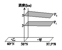 4、单选题 北半球某区域某时刻高空等压面分布示意图,图中P1和P2为等压面,甲、乙两地经度相同。