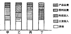 3、单选题 下图是工业部门产品成本比例示意图,回答1—2题。
