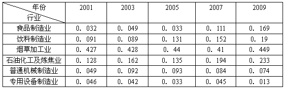 1、从表中可以看出,产业集聚程度较高的行业有