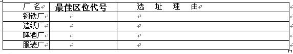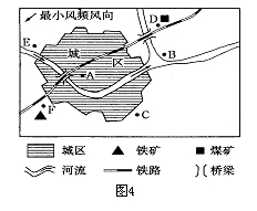 1、综合题 图4所示城镇拟在A、B、C、D、E、F六处选址建钢铁厂、造纸厂、啤酒厂和服装厂。读图并根据所学知识,进行合理的工业区位选择,填写下表。(12分)