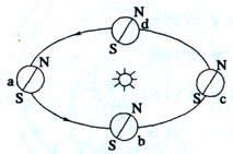 4、单选题 读二分二至日时地球的位置图,回答各题。