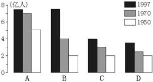5、综合题 读“1950~1997年部分大洲人口增长图”和“1997年部分大洲人口再生产表”回答(10分)