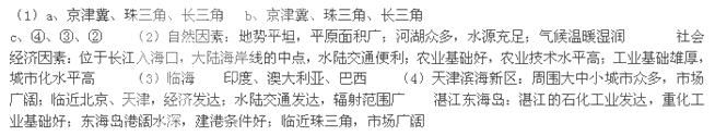 (2)长三角区域经济今后发展应立足自身条件,以上海建设大都市为龙头,努力发展成为世界第六大城市群,试分析长三角成为世界第六大城市群的区位条件。